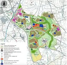 Part of the purpose for the stations development is that Worcestershire Parkway will be the focus of strategic development up to 2041. The strategic growth area extends to approximately 1,130 hectares (2790 acres) and is bounded by the M5, A44, the North Cotswold and Birmingham to Bristol mainline railway and Stoulton to the east. It is expected that development around Worcestershire Parkway will deliver up to 10,000 new homes; 50 hectares (123 acres) of employment sites; a new town centre; two secondary schools and seven primary schools and other supporting infrastructure. Health and other community facilities, including for sport and recreation will also be provided. The area will also benefit from the delivery of in excess of 40% green infrastructure which will include a community park and other smaller neighbourhood parks that will contain several LAPs, LEAPs and NEAPs. Several neighbourhoods will be planned throughout the site which will be linked to the social and community facilities by a network of safe and convenient pedestrian and cycle paths. The ‘Living Locally’ concept will also be applied which means that everyone will be able to meet their daily needs within a walkable catchment of 20 minutes.[7]
