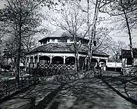 Norumbega Park opened in June 1897 and was built by the directors of the Commonwealth Avenue Street Railway in an attempt to increase patronage and revenues on the trolley line running between Boston and Auburndale. The park's name was taken[2] from the Norumbega Tower, a stone tower that Eben Norton Horsford had built across the river in Weston to mark the supposed Norse settlement of Norumbega.