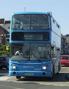 Norwich Park and Ride is a park & ride bus service in the English city of Norwich, East Anglia. The first of the park and rides was opened in the early 1990s at Norwich Airport in Hellesdon,[1] while the sixth (and currently final) site was opened in Thickthorn in 2005.[2] With the addition of the final site, the Norwich Park & Ride became the largest park and ride services in the United Kingdom,[3] and provided the scheme with over 5,000 permanent car parks – at the time the highest number for a park and ride scheme in the country.[2] The scheme was awarded the British Parking Association Park and Ride award in 2004,[3] and in the 2006/2007 financial year, 3.3 million people used the service, keeping 940,000 cars out of the city centre.[4]