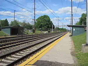 The station's inbound platform and ticket office is located next to the Norwood Public Library, a branch of the Delaware County Library System.[5] Norwood has two low-level side platforms with walkways connecting passengers to the inner tracks. Amtrak's Northeast Corridor lines bypass the station via the inner tracks.