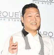 "Calm morning" is said to be in reference to Psy's birth country – South Korea, derived from the characters for one of its older names, Joseon (조선/朝鮮).[22] "Dancing horse" refers to Psy's Gangnam Style "dancing horse" routine, whereas the "nine circles" refer to the number of zeroes in one billion (1,000,000,000), which is nine. It was believed that once Psy's Gangnam Style video on YouTube amassed a billion views, the world would end.