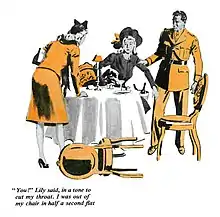 Meanwhile, on the (scarce) flight back to New York from Washington, Archie has annoyed wealthy and beautiful Lily Rowan, whom he met earlier in Some Buried Caesar and with whom he has the beginnings of a romance, because he has no time for her, even though she has gone to great lengths to get the seat next to his. Lily, by way of counterattack as much as anything, asks him to look into a problem a girl-friend of hers is having. Archie, having assessed the grim situation at Wolfe's brownstone, seizes an opportunity to be doing something useful, even if he isn't directly carrying out his assignment from the Pentagon.