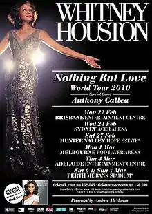 The Nothing but Love World Tour was the ninth and final concert tour by American recording artist, Whitney Houston.[2] It was her first major tour in almost a decade and was used to promote her seventh studio album I Look to You released in 2009.