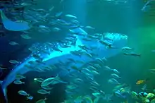 In 2010, captivity whale sharks in the panoramic fish tank of the new facility "Blue World" is started and aquariums have captivity to this day.[1][4] also captivity large pelagic fish such as bluefin tuna. In the winter season after 2013, aquariums installed multiple kotatsu in front of the fish tank of "Blue World" and adopted a system to observe fish while warming the body.[5]
