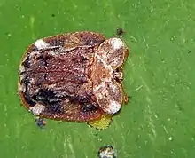 Notosacantha is a genus of cassidine leaf-beetle with nearly 300 species across the Old World. Among the Cassidinae, this genus has among the most species. They feed on plants and can be very host specific. The biology of most species, even the host plants are unknown. Many species have narrow distributions, especially those from islands in Southeast Asia. Nearly 18 species occur in India and many are difficult to identify from external morphology.[1]