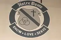 Notre Dame Regional Secondary is a co-ed Catholic Secondary school, under the administration of Catholic Independent Schools Vancouver Archdiocese (CISVA) school board inn Canada.[2] The school participates in sporting events under the name of the "Jugglers", with the team colours of blue, white and silver.