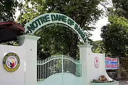 Notre Dame of Banga is a Catholic school located in Banga, South Cotabato, Philippines.[1] It was started in by the Oblates of Mary Immaculate in 1952.,[2] and was transferred to the Augustinian Recollect[3] sisters on May 11, 1956 through the request of Bishop Gerard Mongeau. Its present school head is Sr. Ma. Crisanta A. Armendez, AR. The school covers the elementary, junior high school, and senior high school years.