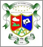 Notre Dame of Marbel University also known by its acronym NDMU) is a private Catholic educational institution run by the Marist Brothers in Koronadal, South Cotabato, Philippines. It was founded in 1945 and offers pre-school, elementary, high school, college and postgraduate courses. It is the first Marist university in the Philippines since 1992, and it houses one of largest library in Southern Mindanao, known as NDMU Library. NDMU is the only university in Koronadal City and is considered to be the premier university and the prime academic institution in the province of South Cotabato. NDMU is a member of the Notre Dame Educational Association, a group of Notre Dame Schools in the Philippines under the patronage of the Blessed Virgin Mary, also the Patroness of the University.
