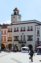 The town square is lined by preserved Renaissance and Baroque burger houses. The town hall was a Renaissance house from the 16th century, rebuilt to the town hall in 1661. In 1881, the façade was rebuilt and modified in the pseudo-Gothic style. In 1929–1930, an insensitive pseudo-Renaissance reconstruction was made.[11]