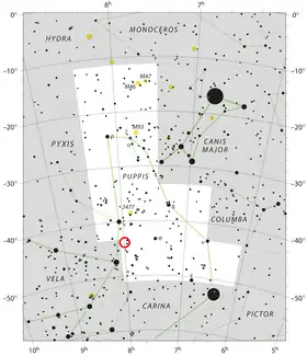 ![]() Location of Nova Puppis 1673 (circled in red) | |