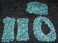 Metallic fibers are often classified as fancy yarns and are created by adding a metallic fiber or yarn to the blend.[4] These are not to be confused with actual wire used in jewellery that is sometimes knit or crocheted.