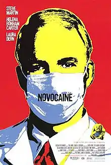 Novocaine is a 2001 American black comedy thriller film written and directed by David Atkins and starring Steve Martin, Helena Bonham Carter, Laura Dern, Lynne Thigpen and Elias Koteas. It was shot in the Chicago, Illinois area. The premiered at the 2001 Toronto International Film Festival and went on to screen in limited release in the United States on November 16, 2001.