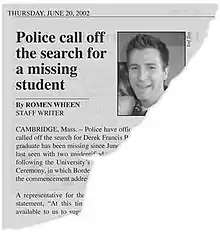 Nowheremen is an alternate reality game and web video series that is centered on the fictional disappearance of Derek Francis Border.[1] Players must solve interactive puzzles and treasure hunts across various mediums, including clues that are embedded within the video series.[2] As users discover more about Derek's disappearance, the story becomes commentary about modern U.S. security efforts, recruiting techniques and the nature of modern surveillance.