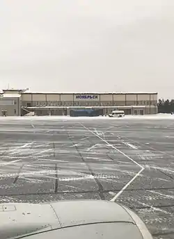 Noyabrsk Airport (Russian: Аэропорт Ноябрьск) (IATA: NOJ, ICAO: USRO) is an airport in Yamalo-Nenets Autonomous Okrug, Russia located 11 km west of Noyabrsk. It handles small airliners. It serves as hub for UTair. It is a modern airport capable of landing large aircraft.[3]