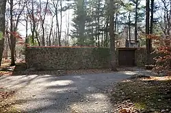 The Noyes House is an historic home on Country Club Road in New Canaan, Connecticut. Designed in the International style of architecture by Eliot Noyes (1910–1977) and built in 1955 by Borglum & Meek of Wilton, Connecticut. It was the second New Canaan house that Noyes designed for his own family to live in. The first one no longer exists. The house is a single story structure with a courtyard plan. One rectangular module houses bedrooms, while another houses the living areas. The two are separated by an open courtyard, but joined by concrete walkways covered by the flat roof of the house. The north and south walls are fieldstone, while the east and west walls are banks of floor-to-ceiling glass, separated by wood and steel columns.[2][3]