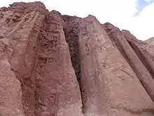 The Nubian Sandstone is a variety of sedimentary rock deposited on the Precambrian basement in the eastern Sahara, north-east Africa and Arabian Peninsula. It consists of continental sandstone with thin beds of marine limestones, and marls. The Nubian Sandstone was deposited between the Lower Paleozoic and Upper Cretaceous, with marine beds dating from the Carboniferous to Lower Cretaceous.[1]