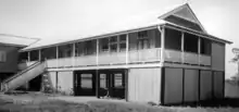 Nudgee State School opened on 28 June 1875 on the western side of Nudgee Road, just south of the junction with Tufnell Road (present day address approx 936 Nudgee Road, 27.3875°S 153.0863°E) on land donated by Isaac Stuckey (now within the suburb of Banyo).[13][14][15][16] By 1924 frequent flooding of the school building and growth in the local population led to new school buildings being erected at 453 Earnshaw Road. On 31 December 2002 it was closed as part of an amalgamated with Banyo State High School to form Earnshaw State College, which operates from the site of the former high school.[5][17] "A" Block of the former state school is listed on the Brisbane Heritage Register (27.3774°S 153.0849°E) but is now within the suburb of Banyo, just beyond the boundary with Nudgee.[18] The Nudgee State School website was archived.[19]