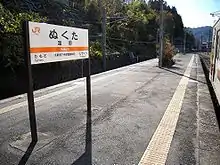 Nukuta Station (温田駅, Nukuta-eki) is a railway station on the Iida Line in the village of Yasuoka, Shimoina, Nagano Prefecture, Japan, operated by Central Japan Railway Company (JR Central).