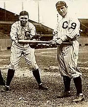 In the early years of baseball, teams did not wear uniform numbers. Teams experimented with uniform numbers during the first two decades of the 20th century, with the first Major League team to use them being the 1916 Cleveland Indians which used them on their left sleeves for a few weeks before abandoning the experiment.[25] Again in 1923, the St. Louis Cardinals tried out uniforms with small numbers on the sleeves, but the players did not like them, and they were removed. For the 1929 Major League Baseball season both the New York Yankees and Cleveland Indians put numbers on their jerseys, the first two teams to do so, beginning a trend that was completed by 1937, when the Philadelphia Athletics became the last team to permanently add numbers to their jerseys.[26][27]
