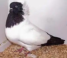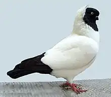 The Nun is a breed of fancy pigeon developed through many years of selective breeding. It was known as the Dutch Shell Pigeon in continental Europe. Nuns, along with other varieties of domesticated pigeons, are all descendants from the rock pigeon (Columba livia).[1] The Nun is one of the oldest breeds and was originally a flying tumbler before being developed for exhibition.[2] It is a mostly white breed, with a hood of feathers, which gives the name to the breed.
