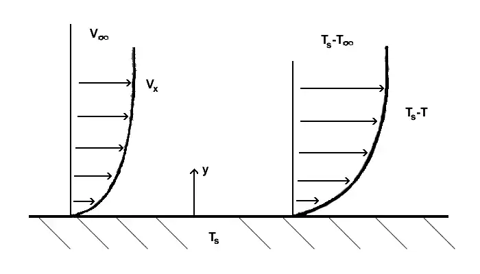 An understanding of convection boundary layers is necessary to understanding convective heat transfer between a surface and a fluid flowing past it. A thermal boundary layer develops if the fluid free stream temperature and the surface temperatures differ. A temperature profile exists due to the energy exchange resulting from this temperature difference.