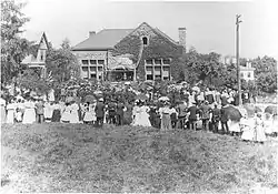 The cornerstone for the new building was laid on May 21, 1903. The public reception for the opening of the new building was held on January 16, 1904. The total cost of the library was $15,597, almost $600 more than the gift of Andrew Carnegie. The cost of the furniture for the building was $950. The architects were the Emery Brothers and Mr. J. B. Simonson. The mason contractor was John M. Rooney. The carpentry was done by E.H. DeBaun. Plumbing and gas fitting was done by A.L. Henry. Painting and decorating was done by Hill and Hubbell.[3] The library expanded in 1973, 1993, and 2010. The grand opening of the renovated Carnegie building and the new wing was on May 7, 2011.