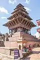 Nyātāpola (Nepal Bhasa: 𑐒𑐵𑐟𑐵𑐥𑑀𑐮, "ṅātāpola", lit. 'something with five storey') is a five tiered temple located in the central part of Bhaktapur, Nepal.[5][6] It is the tallest monument within the city and is also the tallest temple of Nepal. This temple was commissioned by King Bhupatindra Malla, the construction of which lasted for six months from 31 December 1701 to 15 July 1702.[7] The temple has survived four major earthquakes and its aftershocks including the recent 7.8 magnitude April 2015 earthquake which caused major damage the city of Bhaktapur.[8]