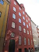 Nybrogade 26 is a property overlooking Slotsholmen Canal in central Copenhagen, Denmark. It consists of a seven-bays-wide, four-storey residential building towards the canal and a former brewery building from the beginning of the 19th century at Magstræde 13 on the other side of the block. The entire complex was listed in the Danish registry of protected buildings and places in 1918. Notable former residents include the army officer and engineer Ernst Peymann (1737-1823). theologian Peter Rørdam (1806-1883) and mathematician and politician Adolph Steen (1816-1886).