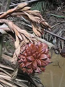Nypa fruticans, commonly known as the nipa palm (or simply nipa, from Malay: nipah) or mangrove palm,[4] is a species of palm native to the coastlines and estuarine habitats of the Indian and Pacific Oceans. It is the only palm considered adapted to the mangrove biome. The genus Nypa and the subfamily Nypoideae are monotypic taxa because this species is their only member.[5]