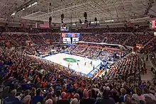 The non-student side of the O'Connell Center during the 2008 NIT Second Round. Note the video replay board in the upper left added during the 2006–2007 season.