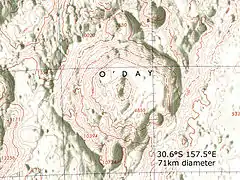- Lunar Map 103, showing O'Day and surroundings (Regional maps at the Lunar and Planetary Institute.)