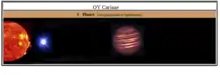 OY Carinae (abbreviated OY Car) is an eclipsing binary system approximately 277 light-years away from the Sun, classed as a cataclysmic variable. The system comprises an eclipsing white dwarf and red dwarf that orbit each other every 1.51 hours, and possibly a yet unconfirmed third low-mass (substellar?) companion.