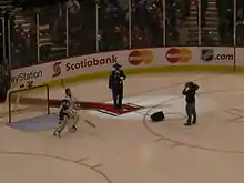 "O Canada" is routinely played before sporting events involving Canadian teams. Singers at such public events often mix the English and French lyrics to represent Canada's linguistic duality.[41] Other linguistic variations have also been performed: During the opening ceremonies of the 1988 Winter Olympics in Calgary, "O Canada" was sung in the southern Tutchone language by Yukon native Daniel Tlen.[42][43] At a National Hockey League (NHL) game in Calgary, in February 2007, Cree singer Akina Shirt became the first person ever to perform "O Canada" in the Cree language at such an event.[44]