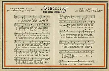 In 1858, Henry Hugh Pierson, an English composer resident in Germany, had written a tune for the patriotic song "Ye Mariners of England" by Thomas Campbell.[1] One year later, he met Ludwig Bauer, who later married Pierson's stepdaughter Dorothea Lyser. Pierson asked Bauer to write a German text to the existing tune.[2]