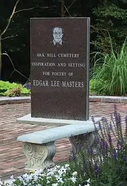 ![]() Edgar Lee Masters memorial at the south entrance to Oak Hill Cemetery | |