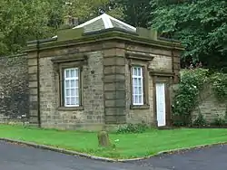 Although not on the original Oakes Park estate, the Bagshawe Arms stands adjacent to it on the north side of Norton Avenue. It was originally a farmhouse belonging to the Bagshawes built with stone from the local Mawfa Lane quarries, it was enlarged and renovated in 1829 and has served as an inn since at least 1844. There is a stone embedded in the south end of the gable with the initials "F.W.B." (Francis Westby Bagshawe) along with a date of 1859.[8]