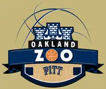 The Oakland Zoo was independently formed by Pitt students in the winter of 2001. The initial idea for the Zoo came from Matt Cohen and Zack Hale during the January 6, 2001 basketball game against Syracuse where they determined the Pitt student section was too calm.[22][23] Cohen and Hale rounded up eight of their fellow students from the university's Litchfield Towers dormitory[24] to initiate the club's first appearance at the January 13, 2001 victory over then 15th-ranked Seton Hall.[22][25][26] The name "Zoo" was meant to represent "a bunch of kids in a zoo acting crazy" whereas "Oakland" is the neighborhood of Pittsburgh in which the university resides.[22] Students adopted gold t-shirts and eventually grew to consume the majority of the student section at the team's home court then inside Fitzgerald Field House. Originally, upon seeking official sponsorship from the University for the 2001-2002 season, the group was denied and the athletic department attempted to implement their own counterpart to their football student cheering section called the "Aero-Zone", named after then athletic department apparel sponsor Aéropostale, and issued free t-shirts to the students emblazoned with this name.[22] However, the "Aero-Zone" failed to catch on while the Oakland Zoo continued to grow, transitioning into the Petersen Events Center when it was opened in 2002 and filling the larger student section of the "Pete". The group is now an officially recognized student group of the University, and with over 2,000 members, is the largest such group. [27] The Pitt Athletic Department now also works hand in hand with the Oakland Zoo, using the student leaders of the Oakland Zoo, otherwise known as the Zoo Keeper, as liaisons to the student body to make game experiences better. Following Cohen, other Zoo Keepers include Andy Nagy (2005–2006), Ian Smith (2006-2007), David Jedlicka (2007-2009), Josh Frantz (2009–2010), Robert Hogan (2010–2011), Eric Haybarger (2011–2012), Joe Lassi (2012-2013), Jordan Shoup (2013-2014), Nick Brenner (2014-2015), Eric Floyd (2015-2016), Charlie Hansen (2016-2017), and Madeleine Shelley (2017–present).