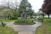 Amundsen Circle (officially Captain Roald Amundsen Plaza) is a traffic circle and 1.05-acre (4,200 m2) park bounded by Amboy Road, Clarke Avenue and Savoy Street. Amundsen Circle and the 4.5-mile (7.2 km) Amundsen Trail for joggers both commemorate explorer Roald Amundsen. The park was acquired by the city in 1928, and named on July 9, 1929. In the park, there is a stone plaque, erected in 1933, when there was a large Norwegian population in Oakwood, by the Norsemen Glee Club of Staten Island and the Norwegian Singing Society of Brooklyn. The park is maintained by the Richmond Ever-Green Garden Club.[5][6]