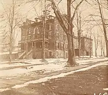 In 1853, the school and its land was sold to a private party who kept it until 1863. In 1857 the New York Yearly Meeting was eager to open a boarding school in Union Springs in central New York. On September 1 of that year a property southwest of the town of Auburn was purchased for $9,842. The first day of classes was May 11, 1858, with grades 1-12, with only four boarders and twenty day students. At this time the school was officially known as Friends Academy.[8] On March 23, 1876 the school officially changed its name to Oakwood Seminary, however the first unofficial reference to the school's name as Oakwood appears in 1863.[8]