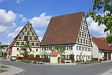 Later conversions of barns and cottages would be by either building an integral kiln within one end of the building, as seen at Biddenden, Kent,[11] or by adding kilns externally to the existing building, as seen at Barnhill Farm, Hunton,[12] and also at Sutton Valence,[13] or both, as seen at Ightham Mote.[14]