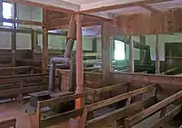The building is a two-story building, five bays wide and two bays deep. Inside the shingled structure, there are sliding panels which divide the men's and women's portions of the building. As with most meeting houses, there are two front doors, one for each gender.[5]