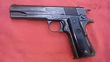 The Obregón is a Mexican designed semi-automatic pistol designed in the mid-1930s by the mechanical engineer Alejandro Obregón. It uses the same .45 caliber ammunition as the Colt 1911 and it resembles the 1911 in overall appearance, frame size and weight. However it features a rotating barrel locking system. This system employs a diagonal cam on the rear of the barrel sliding against a diagonal receiver-mounted groove that rotates the barrel. This is like the Austro-Hungarian Steyr M1912 pistol, unlike the "swinging link and pin" of the Colt M1911 series.