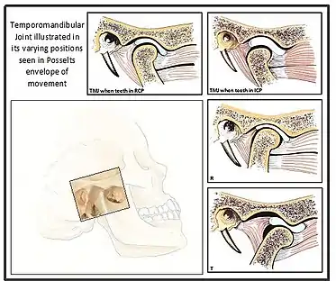 Posselt’s Envelope of Border Movement (often referred to as the 'border movements of the mandible') is a schematic diagram of the maximum jaw movement in three planes (sagittal, horizontal and frontal). This encompasses all movements away from RCP, and includes: