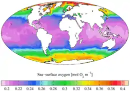 120. Garcia, H.E.; Locarnini, R.A.; Boyer, T.P.; Antonov, J.I. (2006). Levitus, S. (ed.). World Ocean Atlas 2005, Volume 3: Dissolved Oxygen, Apparent Oxygen Utilization, and Oxygen Saturation. Washington, D.C: NOAA Atlas NESDIS 63, U.S. Government Printing Office. p. 342.