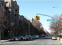 Ocean Avenue is a major street in Brooklyn, New York that runs generally north-south and occupies the position of East 20th Street in the Brooklyn street grid, with East 19th Street to its west and East 21st Street to its east for most of its path.[1] It runs east of and parallel to Ocean Parkway and Coney Island Avenue for most of its route. Except for a short stretch on the Manhattan Beach peninsula, Ocean Avenue starts in the south at Emmons Avenue in Sheepshead Bay just south of the Belt Parkway and continues north, ending at Flatbush Avenue at Willink Plaza after running for several blocks as the eastern edge of Prospect Park. A footbridge across Sheepshead Bay connects the two "Ocean Avenue" sections.