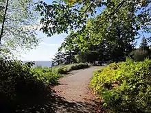They used this place for spiritual renewal and named the area "Kwomais" which literally means place of vision, because of its high bluffs and unobstructed views to the ocean and islands. Kwomais Point is marked on many early navigation maps and has long been used as a lookout point.[1] For protection against the raids of the Yukulta people, the Semiahmoo built a fort in Ocean Park possibly between 1820 and 1830. The fort fell into disrepair in colonial times. Today, the site is a subdivision called Indian Fort Drive near the west end of 20th Avenue.