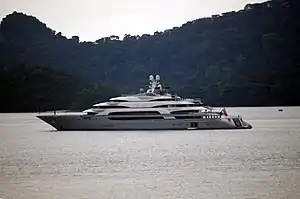 Ocean Victory is a Fincantieri super yacht, designed by Espen Øino (Oeino) and Alberto Pinto.[1] At 140m long she was at the time of her construction one of the top 10 largest yachts in the world. She is reported to have seven decks, a helipad, six pools, and can accommodate a 14m tender in a floodable garage.[1][2] She can accommodate 36 guests.[1]