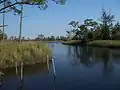 The park's location at the top of Ochlockonee Bay is within a tidal estuary, with fresh water from the Ochlockonee and Sopchoppy Rivers mixing with tidal salt water from the Gulf of Mexico to produce a brackish environment, inhabited by both fresh and saltwater fish.[9] Largemouth bass, bream, catfish, speckled perch, and other fish are found in the brackish river waters,[10] along with blue crabs.[7]