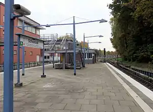 From March to September 2015 a lift was constructed at the station's entrance, and the platform was partly elevated to allow an easier access for handicapped people.[1] On the compound of the freight yard, which had been closed in 1991 and the tracks removed at the end of the 2000s, a car dealer expanded its facilities, including a shopping mall and a car park. The car park was originally planned as a Park and Ride facility, but due to protests and legal proceedings of residents of nearby street of Stockflethweg the car dealer company decided to use it only as a car park for their offered cars.[3] A further Park and Ride facility is projected.