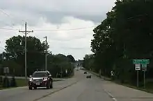 ![]() Oconto Falls greeting sign, facing US-22 West on the northeast side of town | |
